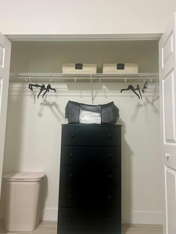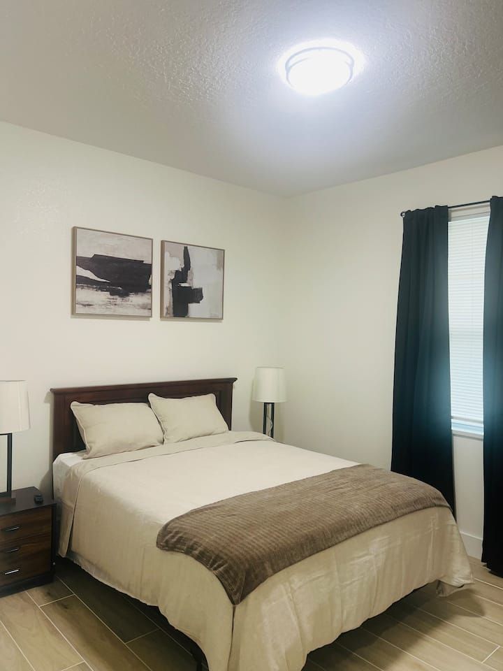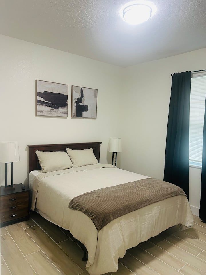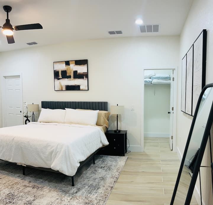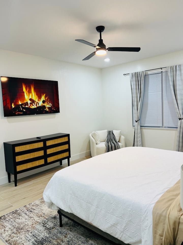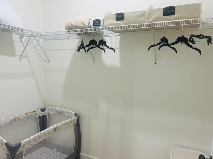 King bed • Air conditioning • Bed linens • Body soap • Clothing storage • Conditioner • Drying rack for clothing • Hair dryer • Hangers • Heating • Iron • Long term stays allowed • Pack ’n play/Travel crib • Shampoo • Shower gel • TV • WiFi