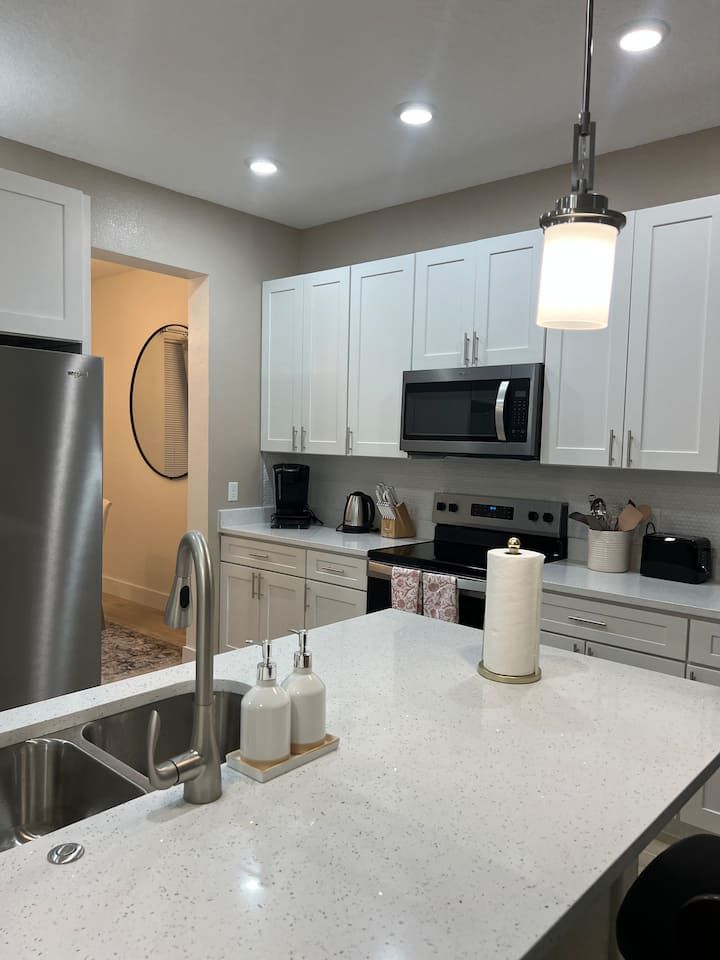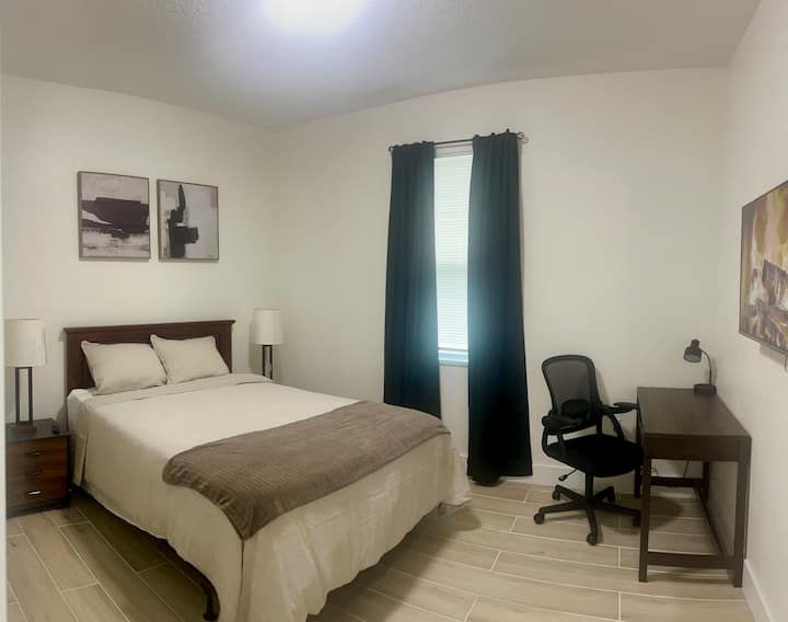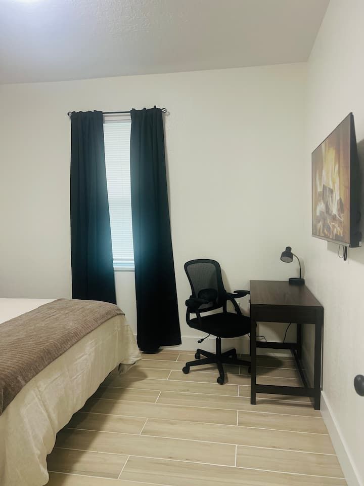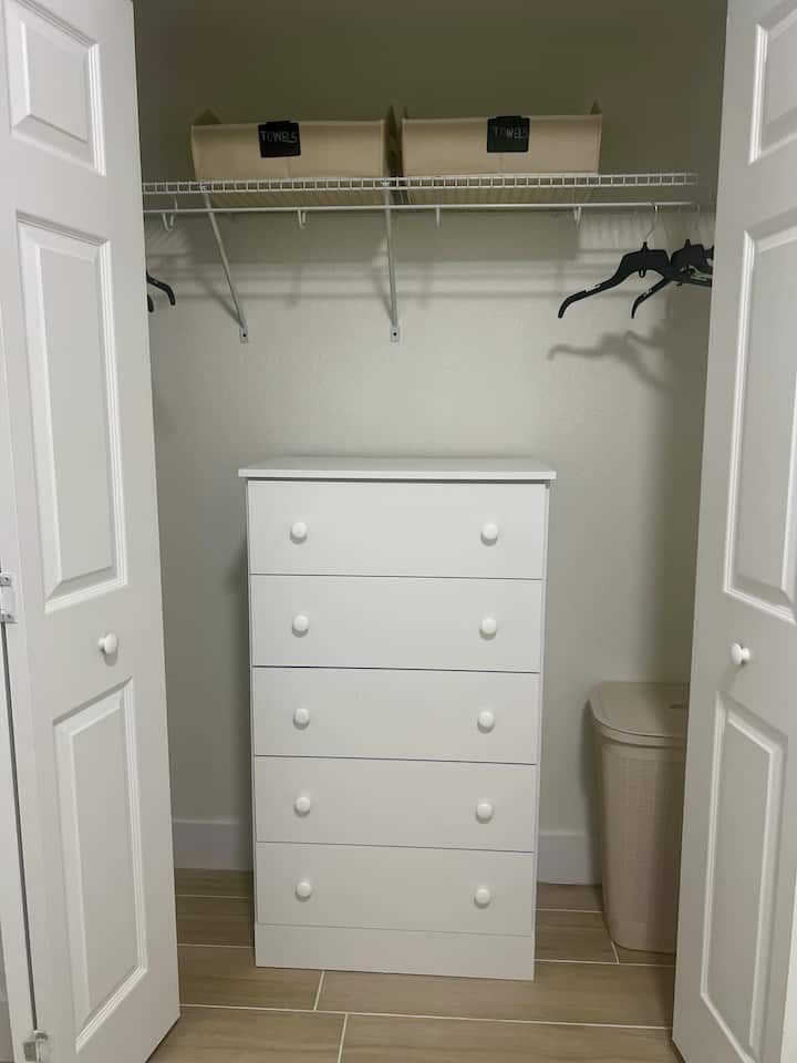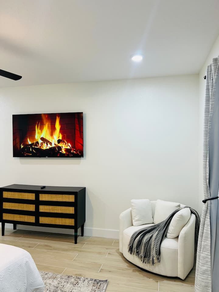 King bed • Air conditioning • Bed linens • Body soap • Clothing storage • Conditioner • Drying rack for clothing • Hair dryer • Hangers • Heating • Iron • Long term stays allowed • Pack ’n play/Travel crib • Shampoo • Shower gel • TV • WiFi